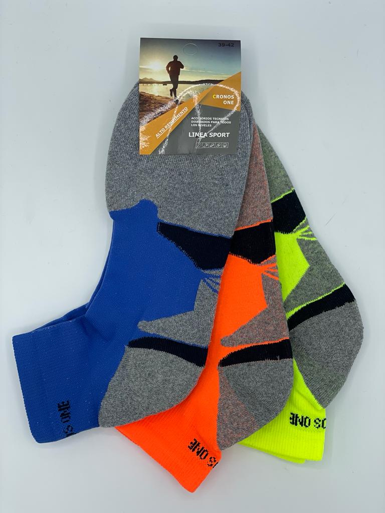 Calcetín tobillero semi alto deportivo tecnico con diseño exclusivo . La planta esta fabricada con un hilo especial de algodon super resistente que aguanta los deportes mas extremos garantizado transpiración , agarre y comodidad , sin costura para no hacer roces , una inmejorable opción para cualquier deporte.